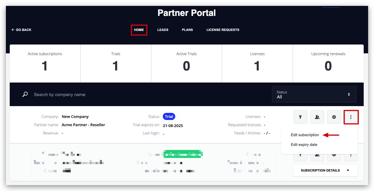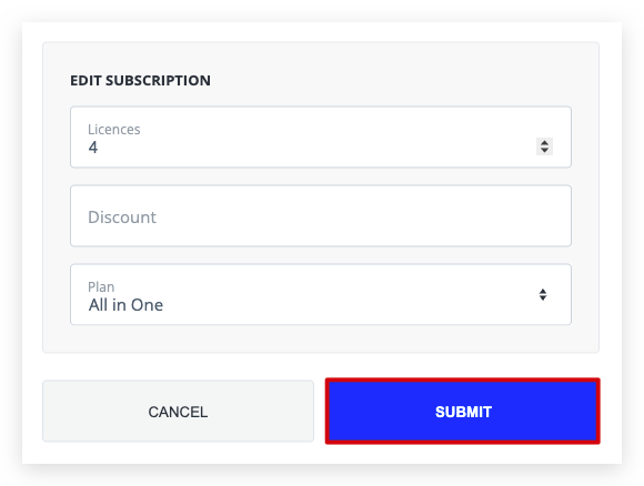 2. Select Edit Subscription and enter the correct number of licenses and the adequate Seenspire plan. For more information on the different plans,